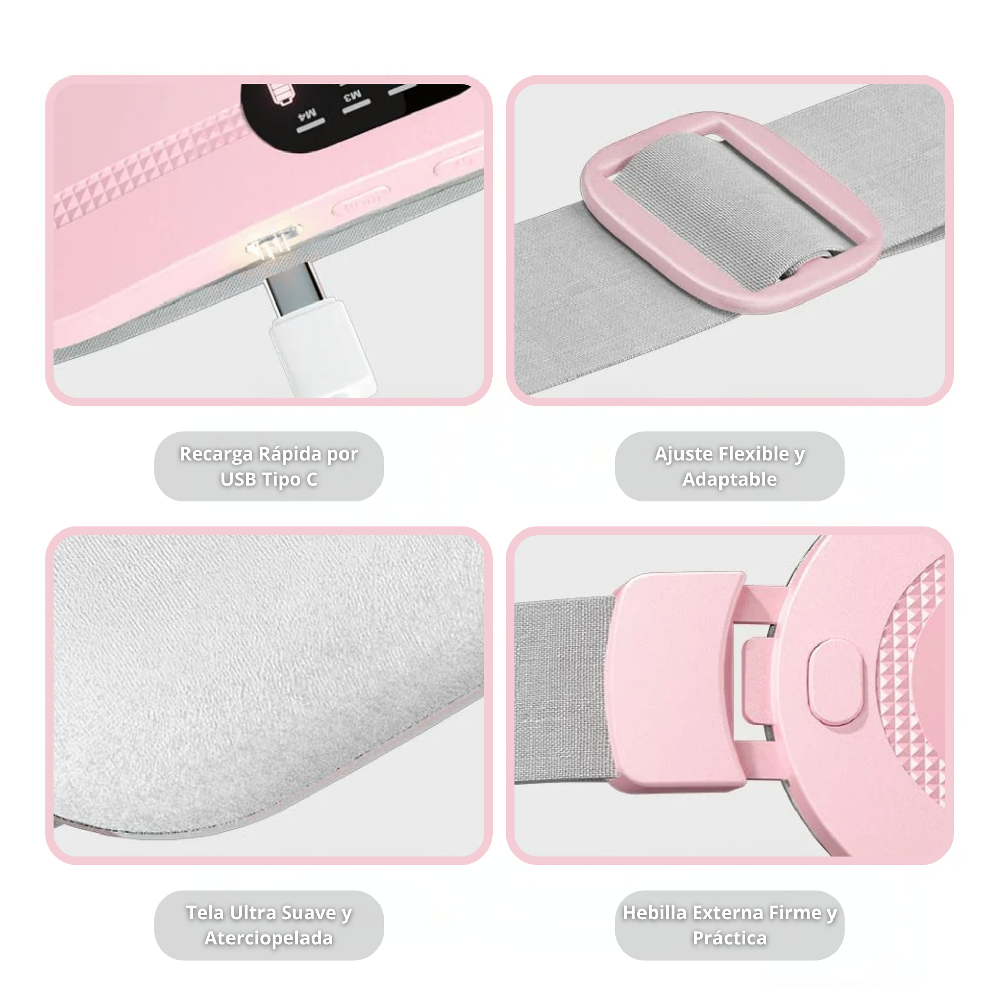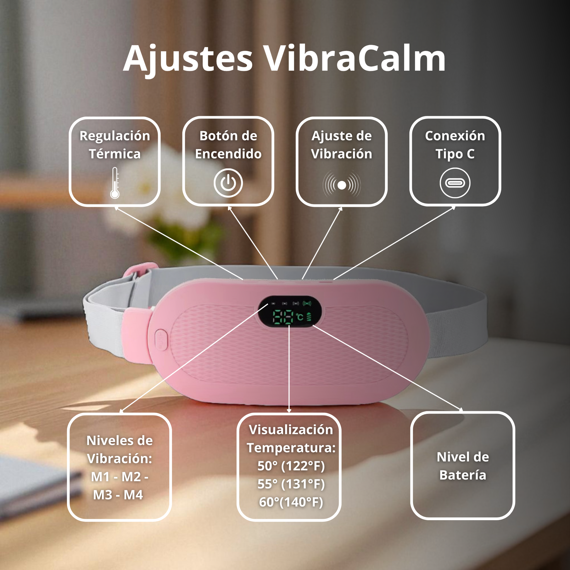 VibraCalm combina 3 niveles de calor terapéutico (50°C, 55°C y 60°C) con 4 modos de vibración gradual (M1, M2, M3 y M4), brindando una experiencia completamente personalizada para aliviar los calambres menstruales, el dolor lumbar o abdominal y esos molestos escalofríos que aparecen sin aviso.