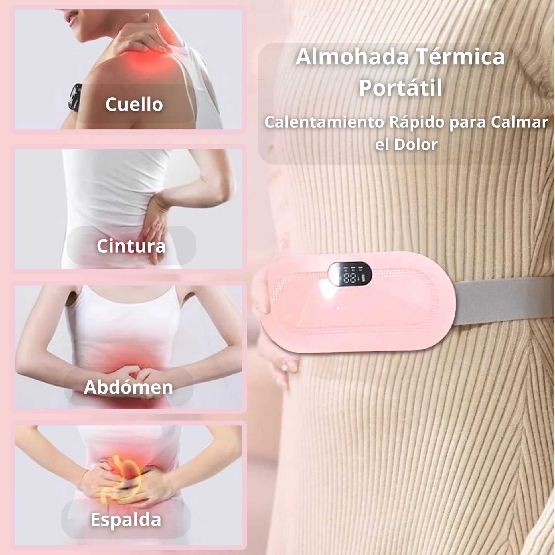 VibraCalm es una almohadilla calefactora portátil con masaje para aliviar los calambres menstruales, diseñada para darte confort con libertad y sin cables.